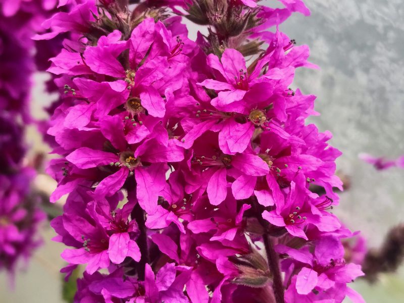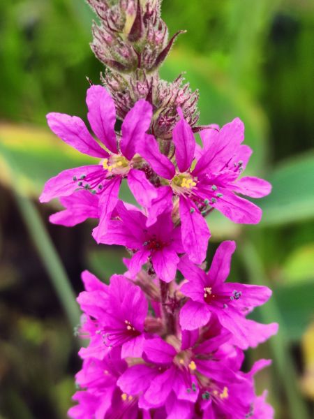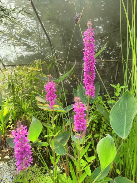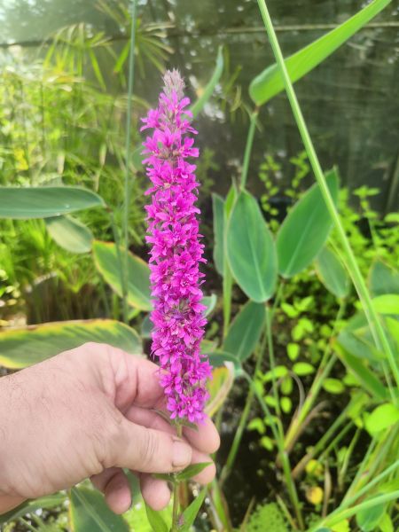 Krwawnica pospolita (Lytthrum salicaria) Odporna i długo kwitnąca roślina o purpurowych kwiatach. To jewst rodzimy polski gatunek. Bardzo łatwa uprawa, rośliny te się chętnie same rozsiewają. Osiąga wysokość około 120 cm. Preferuje podłoże kwaśne. Może rosnąć także na rabacie jeśli jest zapewnimy wilgoć. Zakwita latem. Zbliżenie kwiatów na fotografii poniżej. Na zimę uschnięte kwiatostany się usuwa, wiosną wyrastają nowe z kłącza.