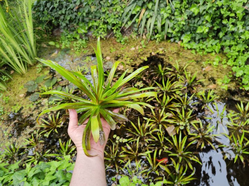 Osoka aloesowata (Stratiotes aloides) Roślina kształtem przypomina aloes lub ananas. Latem unosi się pływając przy powierzchni wody. Wówczas zakwita wydając kwiaty od maja do sierpnia. Na zimę opada na dno zbiornika. Zimuje bezproblemowo. Rozrasta się przez młode rośliny na rozłogach, które same się oddzielają. Wielkość pojedynczej rośliny dochodzi do ponad 50 cm. Roślin nie sadzimy wystarczy wrzucić je do wody.